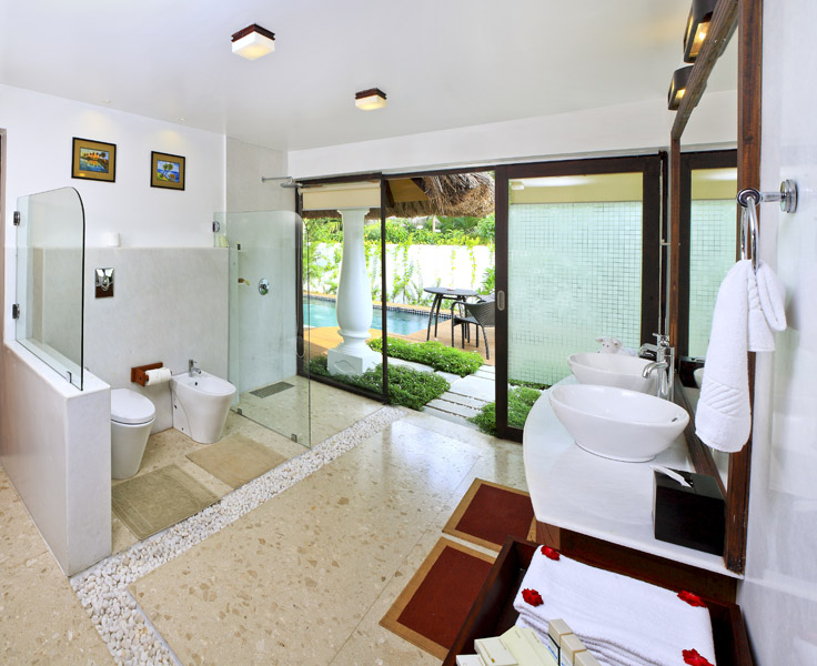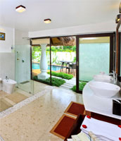 Личный бассейн, веранда, роскошные ванные комнаты и художественно оформленные гардеробные комнаты, кондиционер,телевизор со спутниковыми каналами, телефон, интернет, мини-бар.