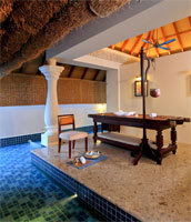 Отель окружен великолепным тропическим садом, кокосовыми пальмами и цветущими фруктовыми деревьями. Сорок изысканно меблированных вилл с отдельным бассейном и верандой, оборудованных по самым современным стандартам, высокопрофессиональный центр Аюрведы и SPA, сказочно красивая природа и прекрасный пляж ждут вас на этом экологически чистом курорте.